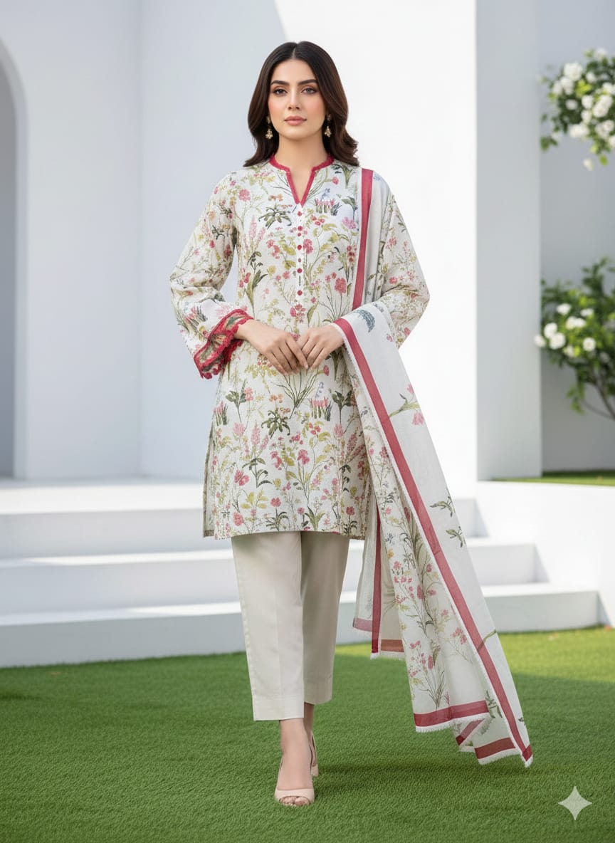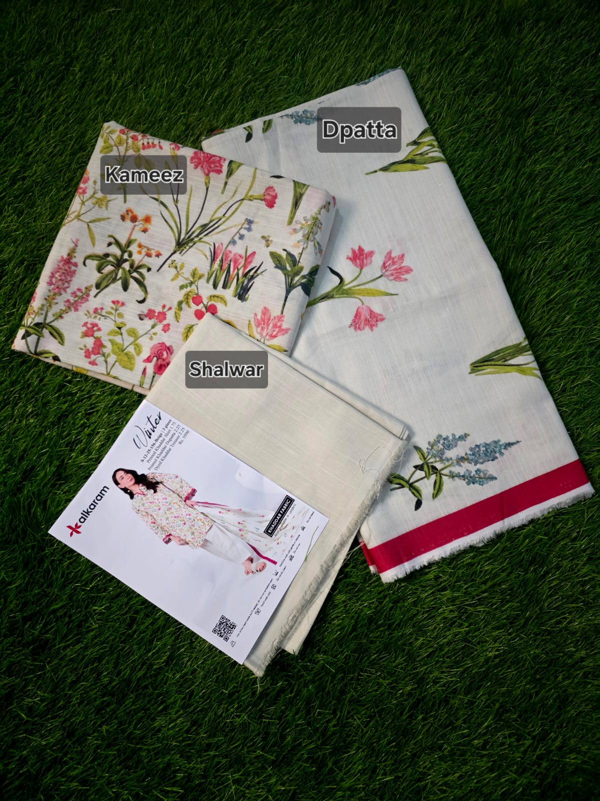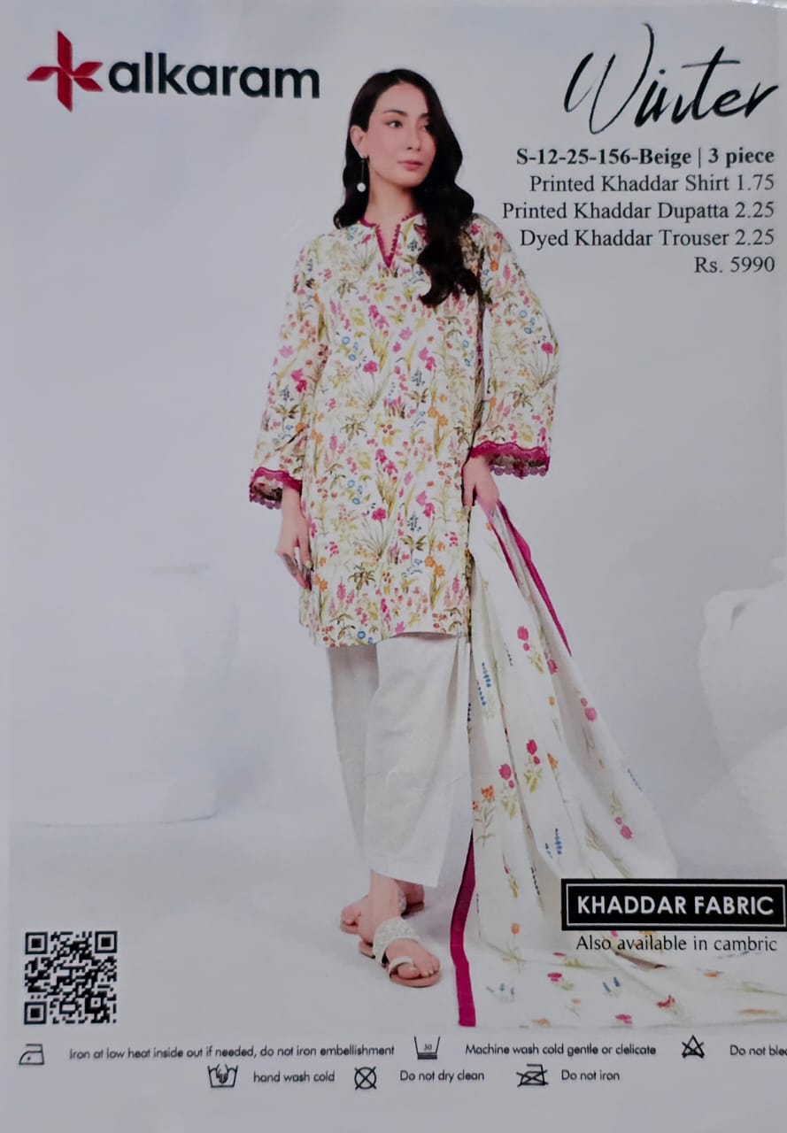 Experience the perfect winter style with this 3-piece unstitched Khaddar suit from Alkram. Includes a printed Khaddar shirt, matching dupatta, and dyed Khaddar trouser. Soft, warm, and elegant - ideal for casual or festive wear. High-quality fabric ensures comfort and lasting style.